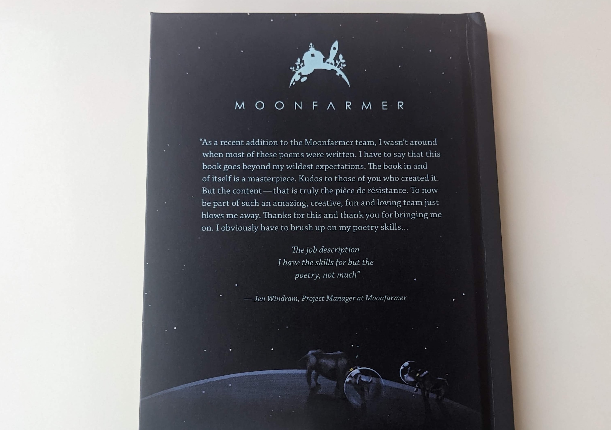 As a secret project between me (the designer) my boss (the illustrator) and one other coworker to organize us, this was our pandemic holiday gift for everyone at Moonfarmer: a book of lunchtime poetry written by all of us.